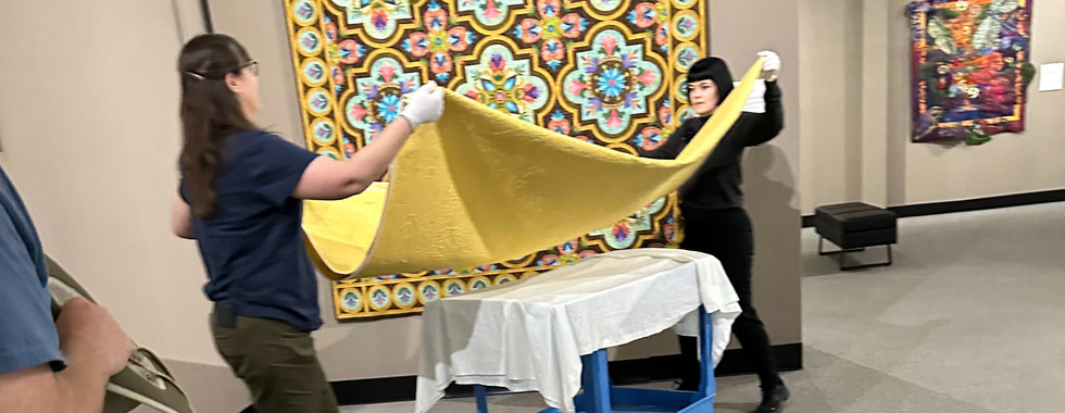 We walked a lot. We were there on a Monday, not realizing that the town practically shuts down on Monday's. Regardless, we were able to find plenty to do. We had lunch at a place known for their steaks, but we had their chili and tamales, and highly recommended them. It was a beautiful day to enjoy lunch outside. After lunch, we made our way back to the quilt museum. We way underestimated this place. I think we said WOW at least fifty times. Right before we left, we got to see how they take down and replace the quilts and talk to the ladies about the storage process.